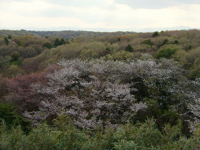 行くの遅かった…。桜の花は乏しい。でも好きな場所なので載っけました。この角度だけ、ここらではあり得ないような景色。千年も昔は日本の平地もこんな森の風景だったろうなぁ。