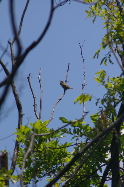 しばらくボーッとしてたら、ウグイスが手の届きそうなほど近くで鳴きまくってくれました。前後左右のサラウンド。何匹いたんだろ(汗)。メジロも確認。実に良い所だ〜!