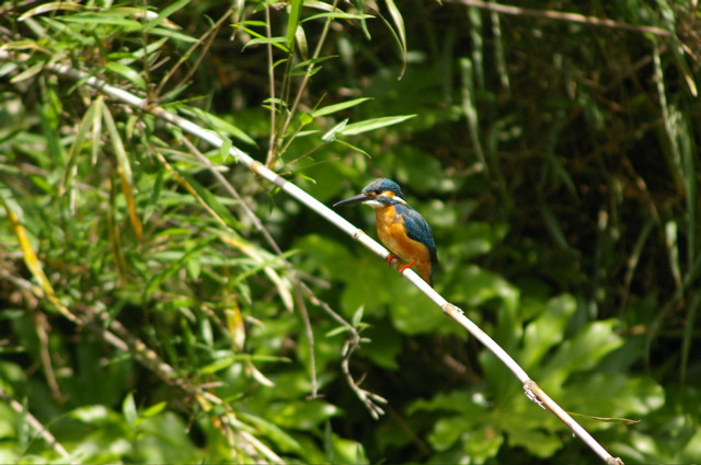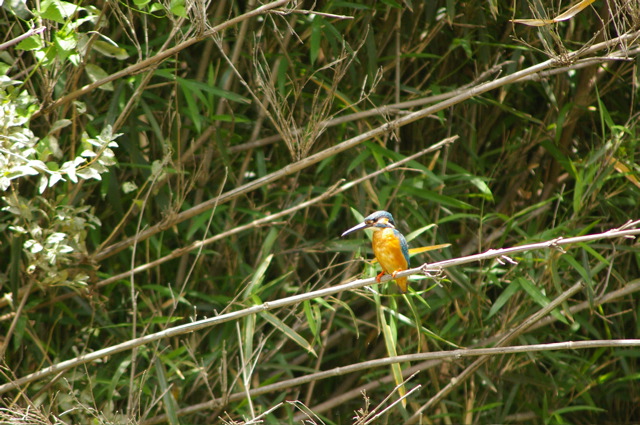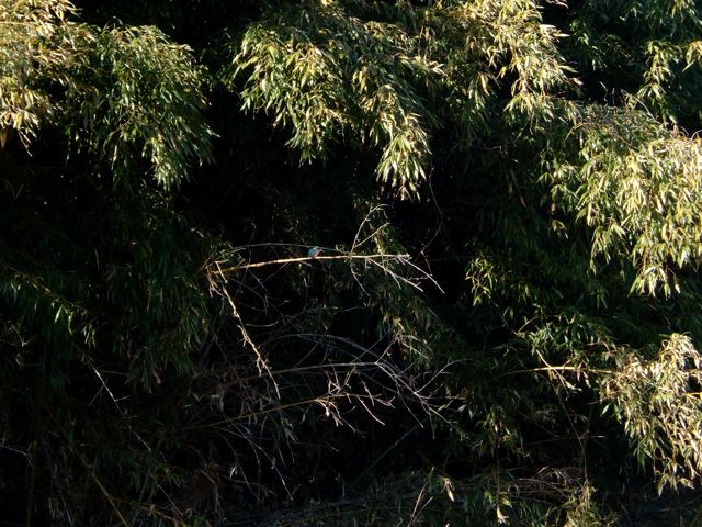 対岸の茂みにいるカワセミ。何てことない写真ですが、私は結構感動してます。