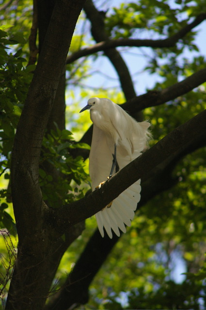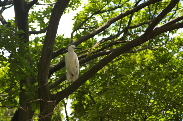 木の上にサギを発見。こっち見てる…。